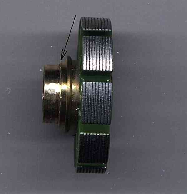 pokazuje miejsce, w którym znajdował się zeszlifowany kołnierz. |  | Z