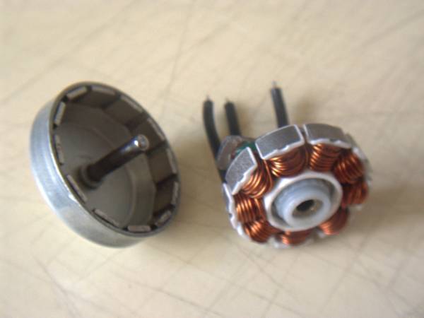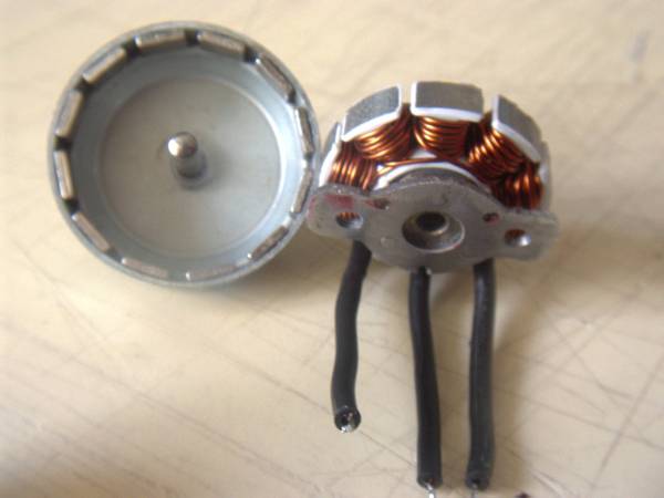 drut 0,57. W silniku nalezy zdjac biala izolacje znajdujaca sie na obwodzie statora. Daje to mozliwosc uzyskania szczeliny powietrznej na poziomie 0,15mm bez jakiegokolwiek podcinania czy toczenia. Beben firmowo posiada bardzo duzo miejsca na uzwojenie dlatego postanowilem uzyc